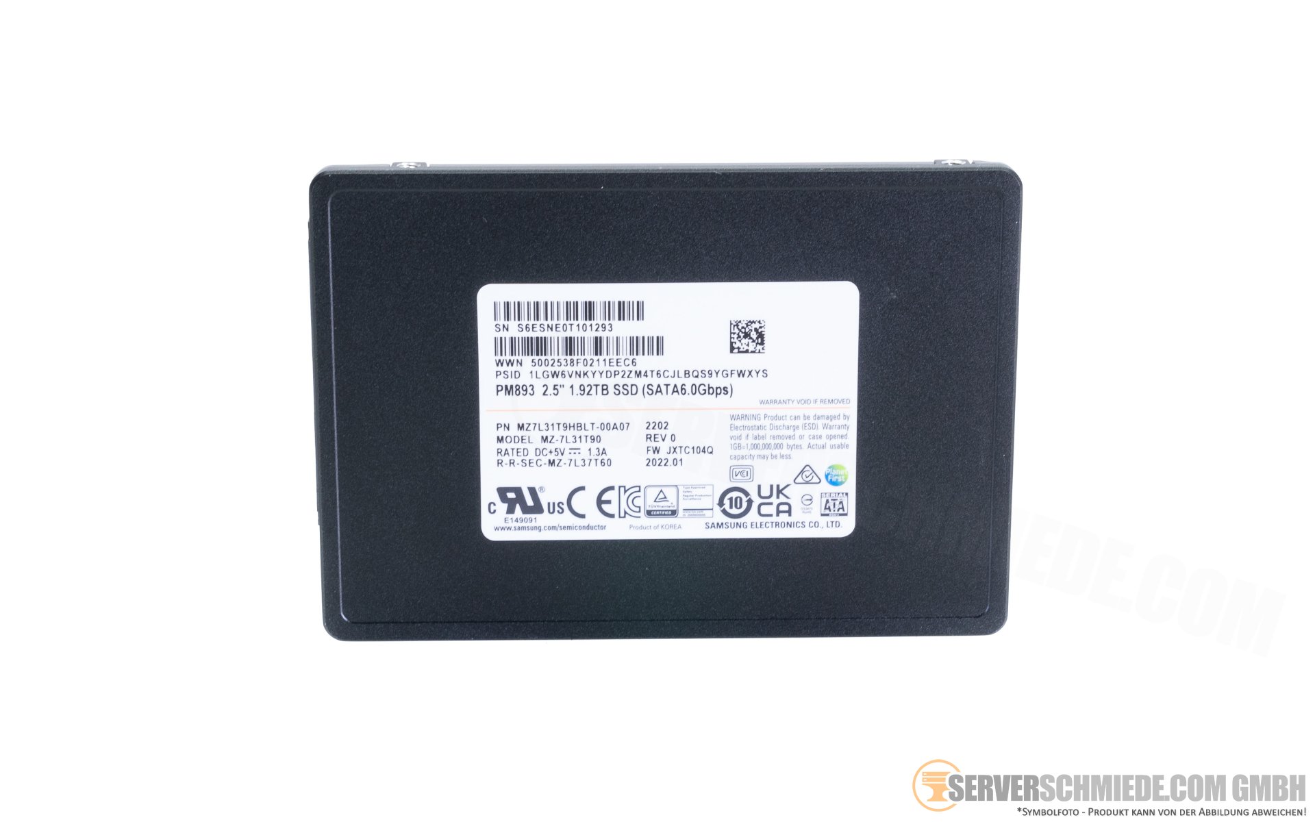 1,92TB 2,5" Samsung PM893 Datacenter Enterprise 24/7 Raid SATA SSD 3504 TBW 97K IOPS