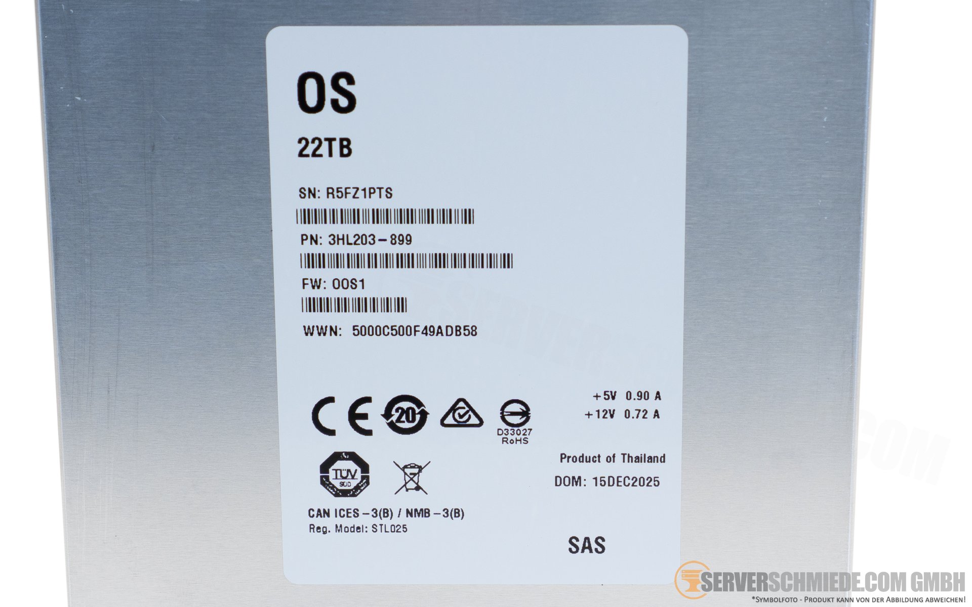 22TB Seagate EXOS X22 3,5" LFF 12G SAS 24/7 Raid Datacenter Enterprise HDD ST22000NM000E +zero hours+ Whitelabel