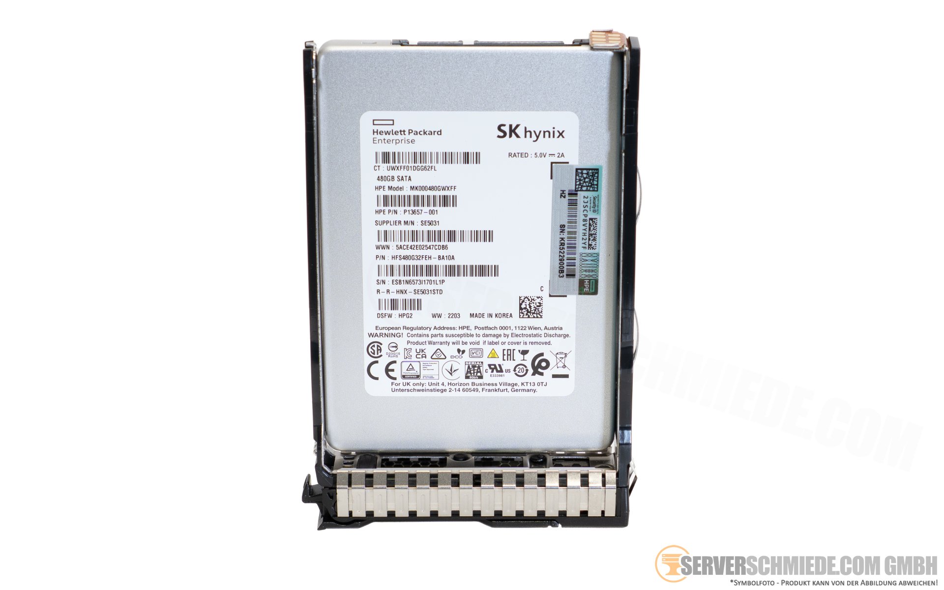 480GB 2,5" SFF HP SK hynix SATA 6G SSD Datacenter 24/7 Festplatte incl. Tray P13657-001