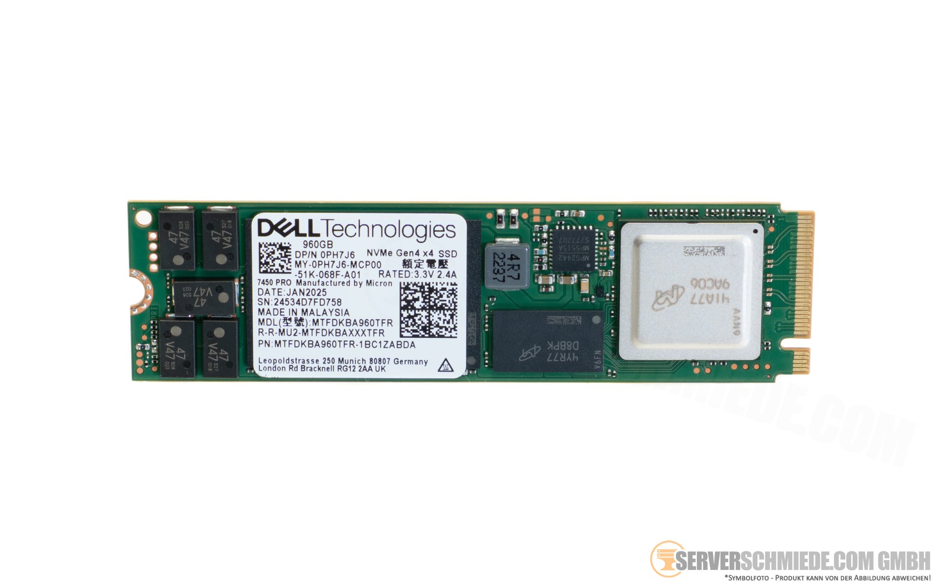 960GB M.2 2280 Dell Micron 7450 Pro NVMe PCIe 4.0 BOSS N1 MTFDKBA960TFR 0PH7J6