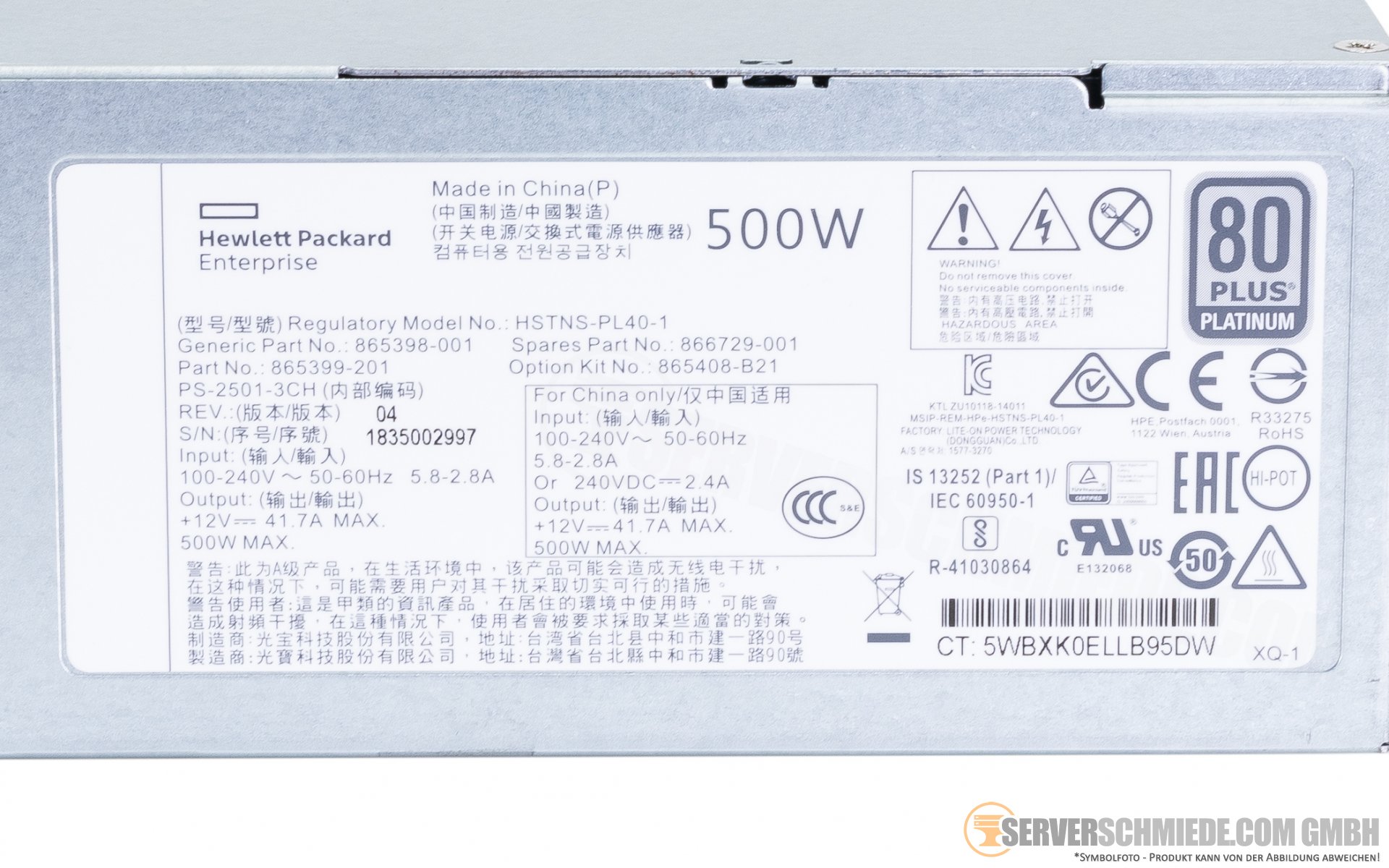 HP 500W Flex Slot Platinum Hot Plug Low Halogen 80 Plus PSU Netzteil Gen10 Gen10 Plus 865399-201