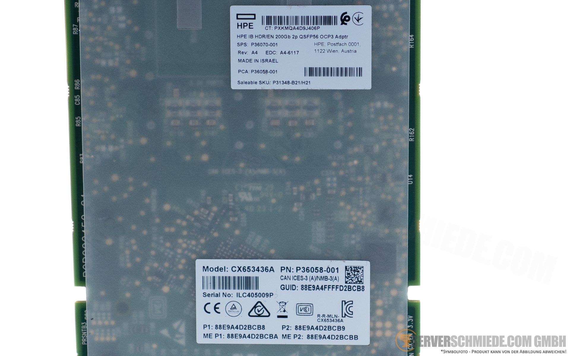 HPE Mellanox CX653436A 2x 200Gb QSFP56 LAN Network Controller OCP 3.0 ConnectX-6 MCX653436A-HDAI P31348-B21