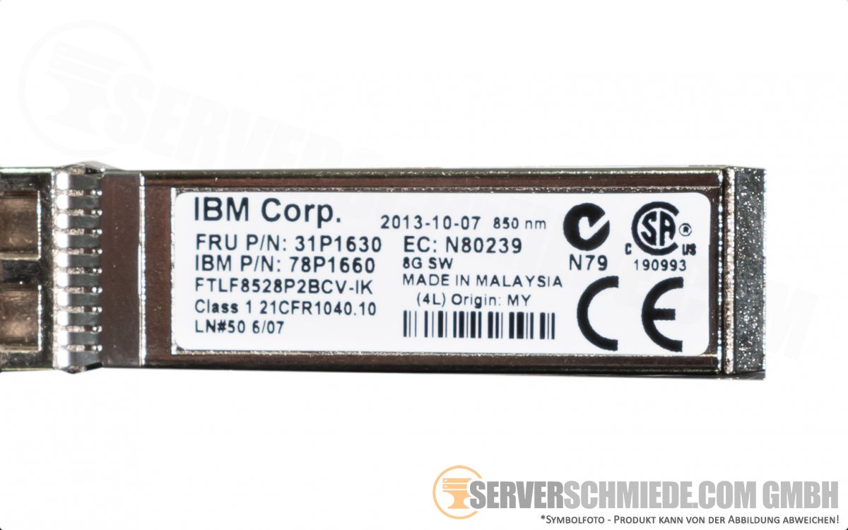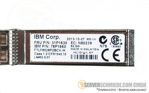 IBM GBIC 8Gb SFP+ Transceiver 850 nm FTLF8528P2BVC-IK 21CFR1040.10 31P1630 78P1660