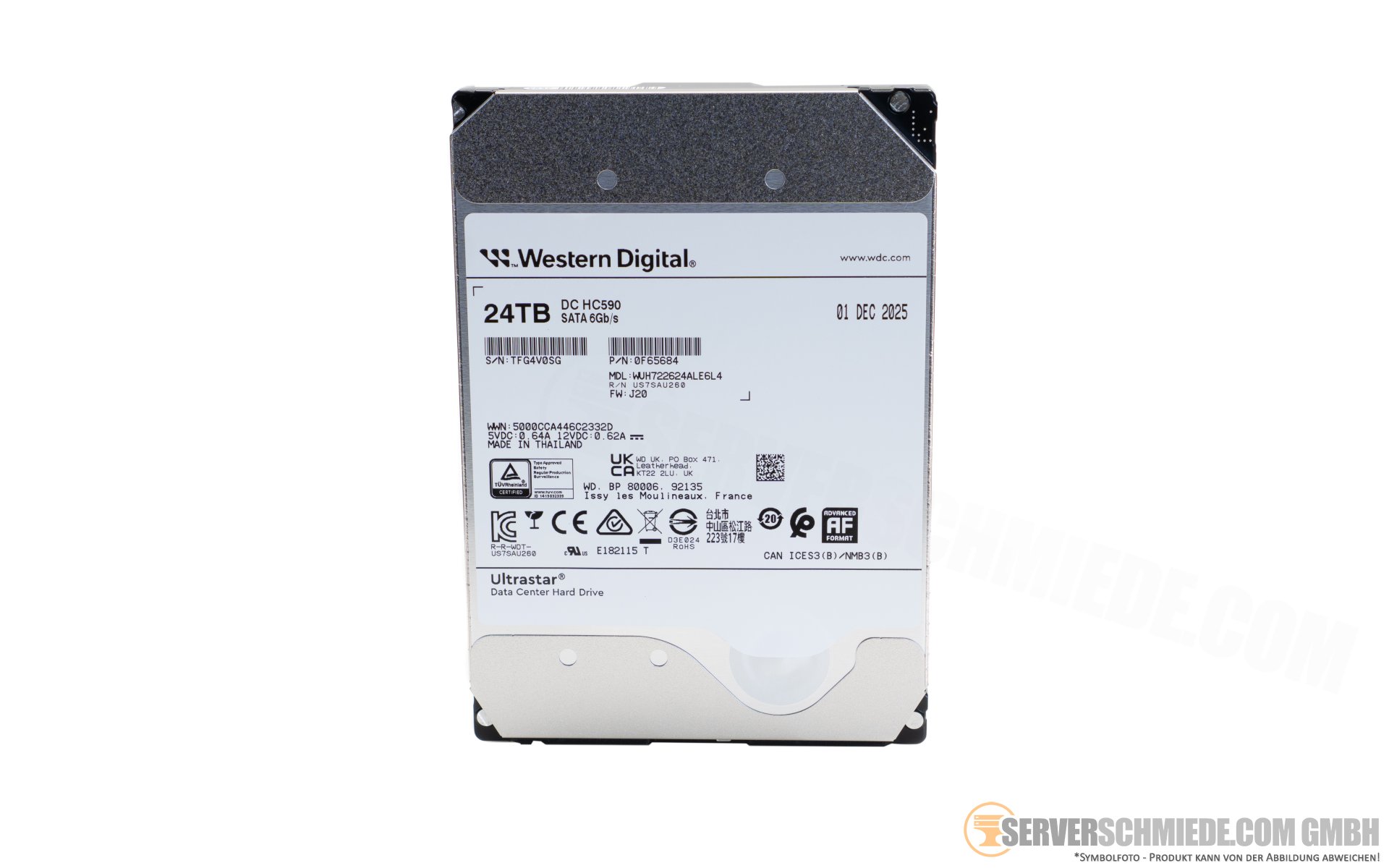 24TB 7,2k 3,5" LFF WD Ultrastar DC HC590 SATA 6G HDD Datacenter 24/7 Festplatte WUH722624ALE6L4 +NEW+