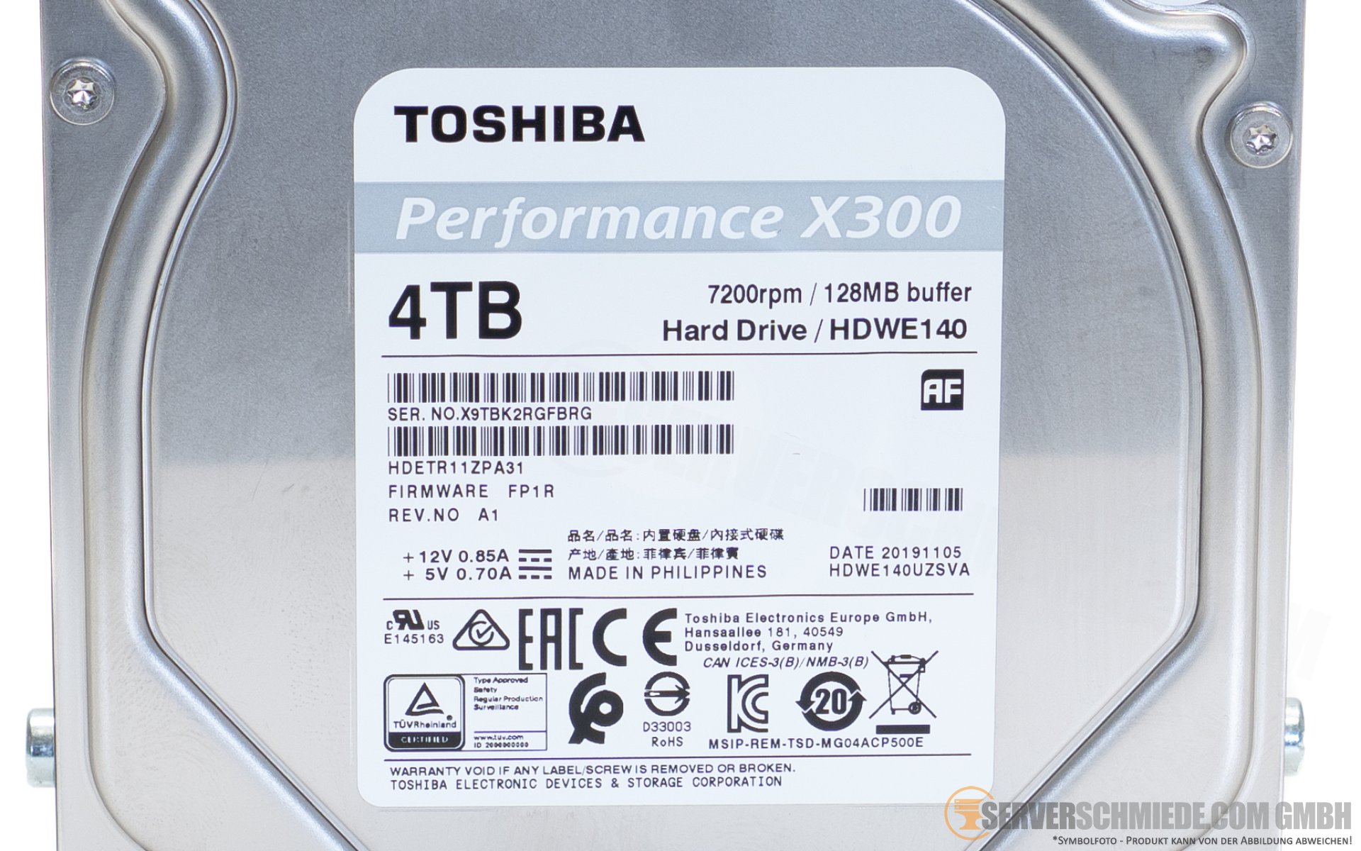 4TB 3,5" LFF Toshiba Performance X300 SATA 6G HDD Datacenter 24/7 Festplatte HDETR11ZPA31
