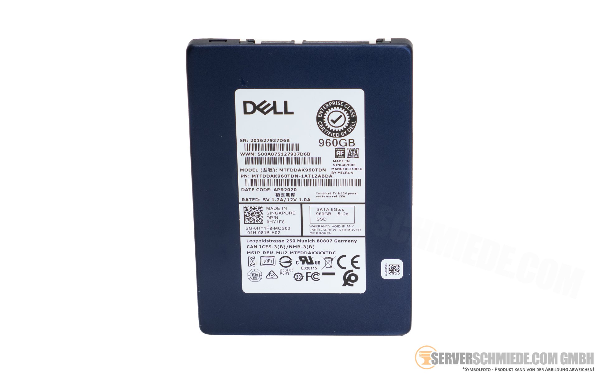 960GB 2,5" Dell Micron 5200 Max SATA SSD Datacenter 24/7 Festplatte without Tray 0HY1F8