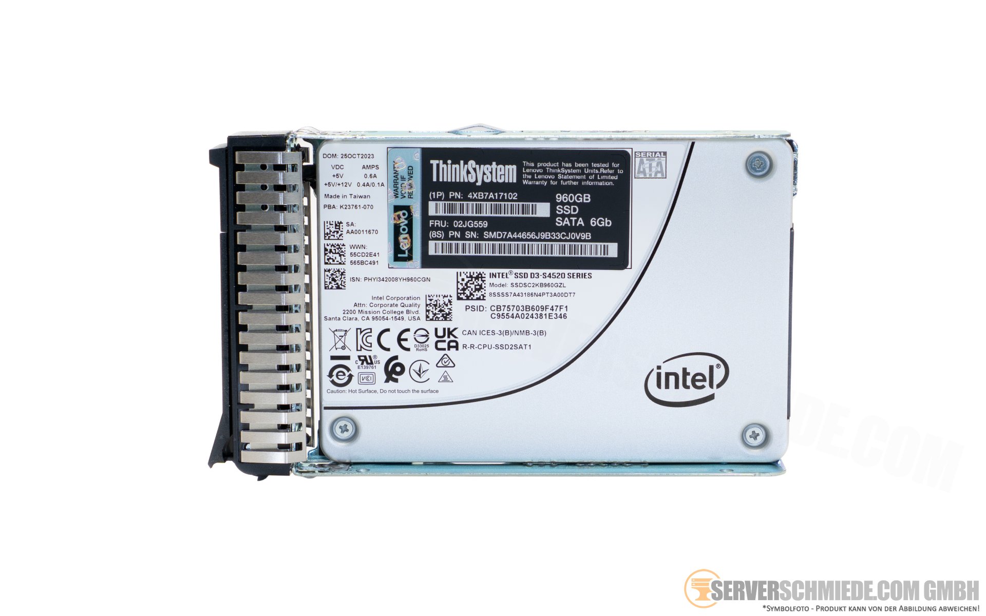 960GB 2,5" SFF Lenovo Intel Solidigm D3-S4520 SATA 6G SSD Datacenter 24/7 incl. Tray 4XB7A17102 +NEW+