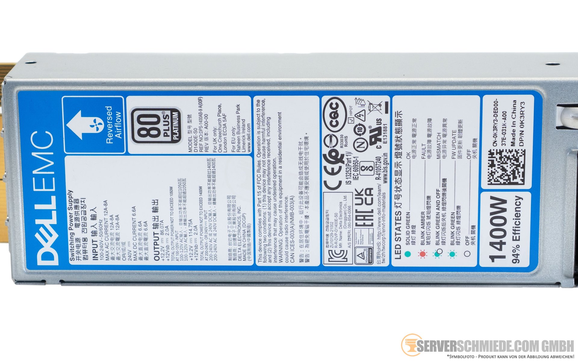 Dell 1400W Netzteil PSU 80 Plus Platinum Reverse Airflow XR12 XR7620 XR5610 08WKTV 0C6T8M