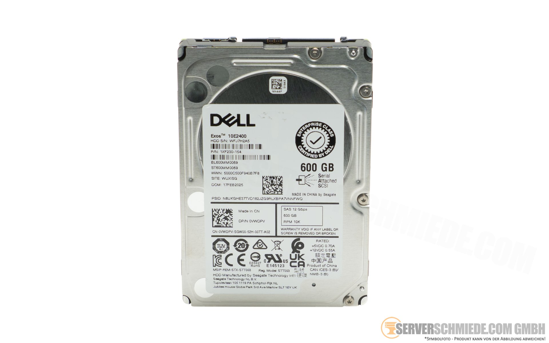 Dell 600GB 10k 2,5" SFF SAS 12G HDD Raid Enterprise 24/7 Festplatte 0VWDPV
