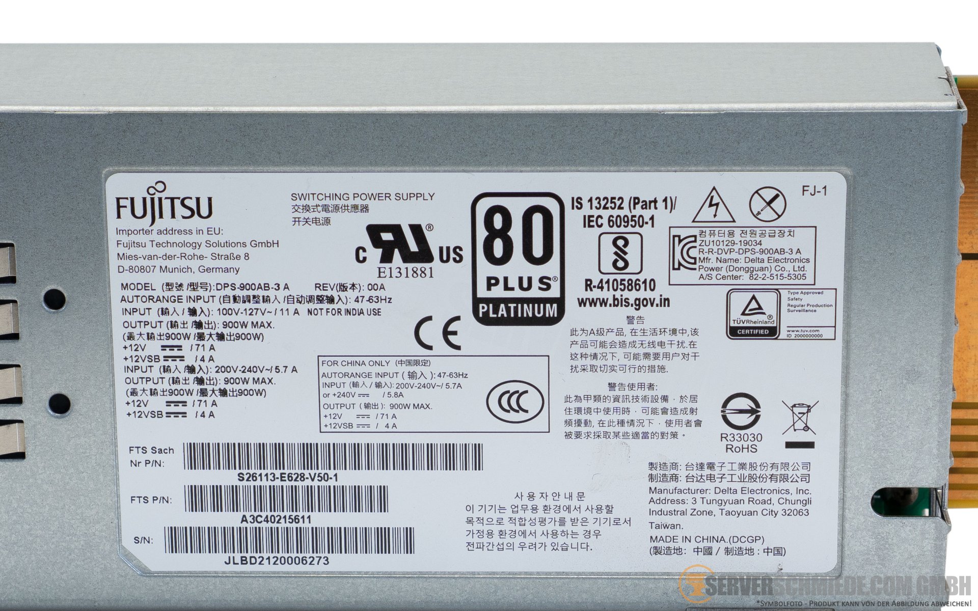 Fujitsu 900W Netzteil PSU 80 Plus Platinum RX2530 RX2540 M6 M7 A3C40215611