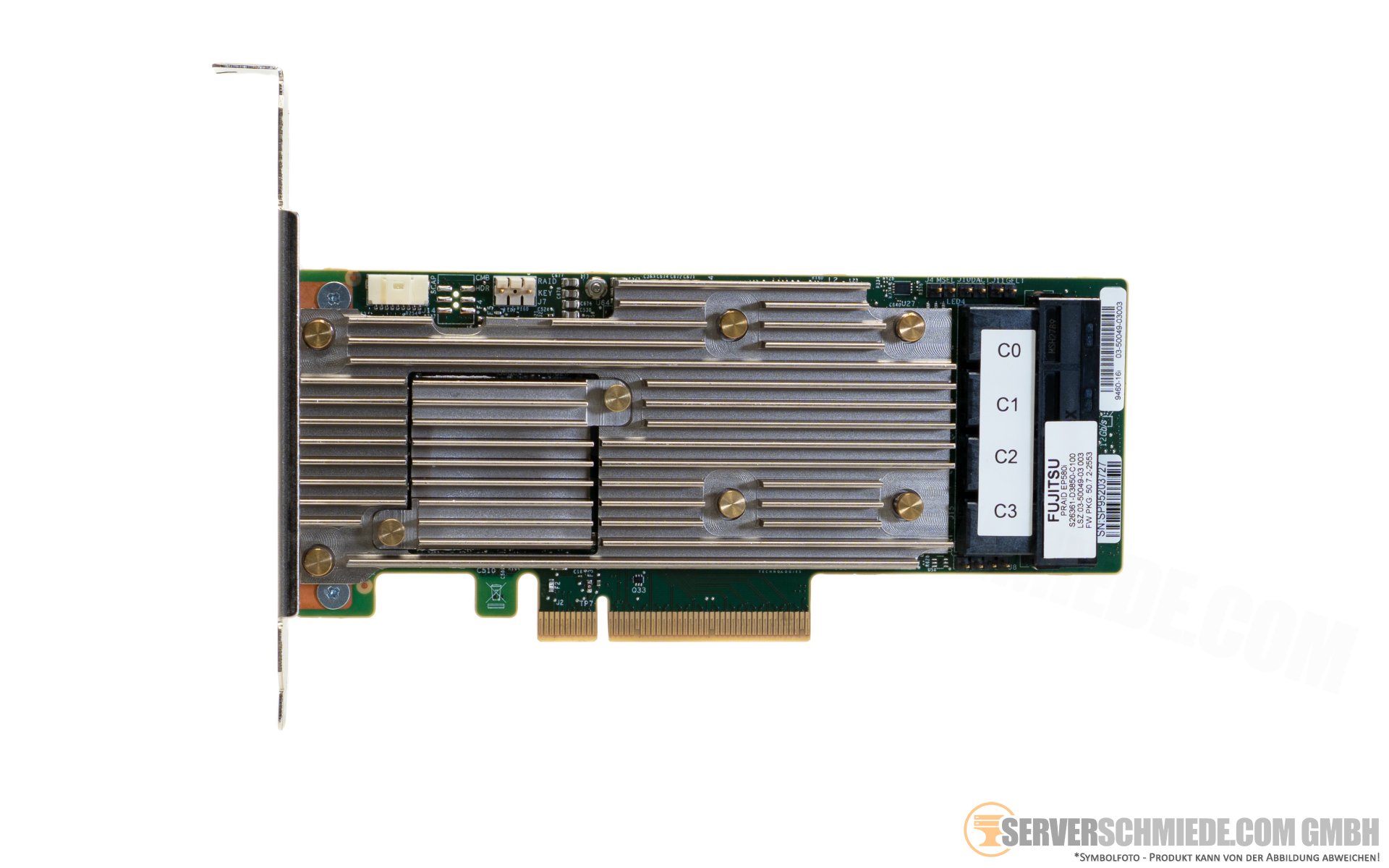 Fujitsu Praid EP540i SAS/SATA Raidcontroller 4GB 2133MHz DDR4 Cache 16x 12G SAS Ports 4x SFF-8643 PCIe 3.0 8x Raidlevels 0,1,5,6 16 lines mit 8G PCIe 3 für 4x x4 NVMe Laufwerke Low Profile S26361-D3850-A100