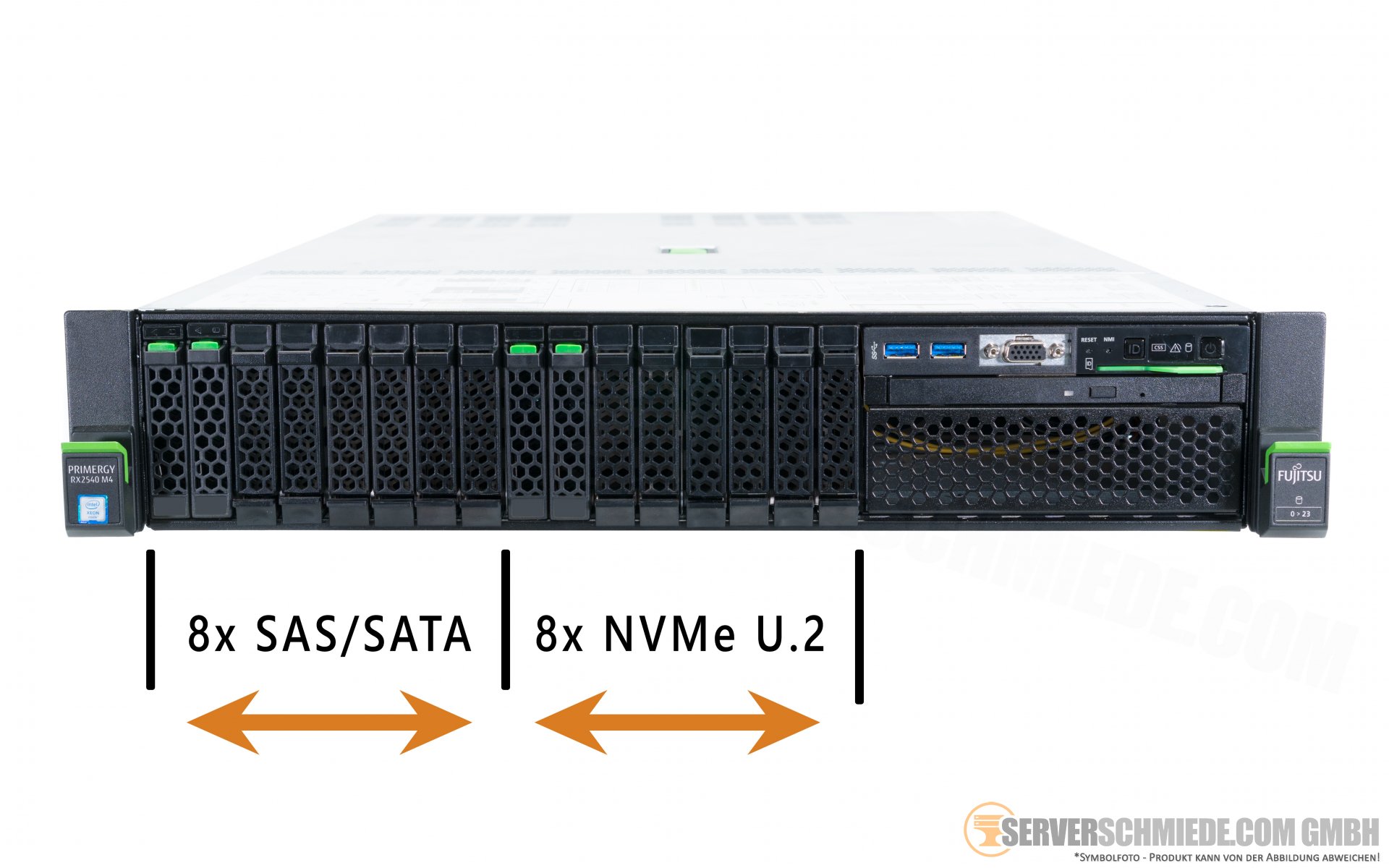 Fujitsu Primergy RX2540 M4 19" 2U Server 8x SAS + 8x NVMe 2,5" SFF 2x Intel XEON LGA3647 Scalable Gen. 1 SAS SATA Raid 2x PSU vmware ready