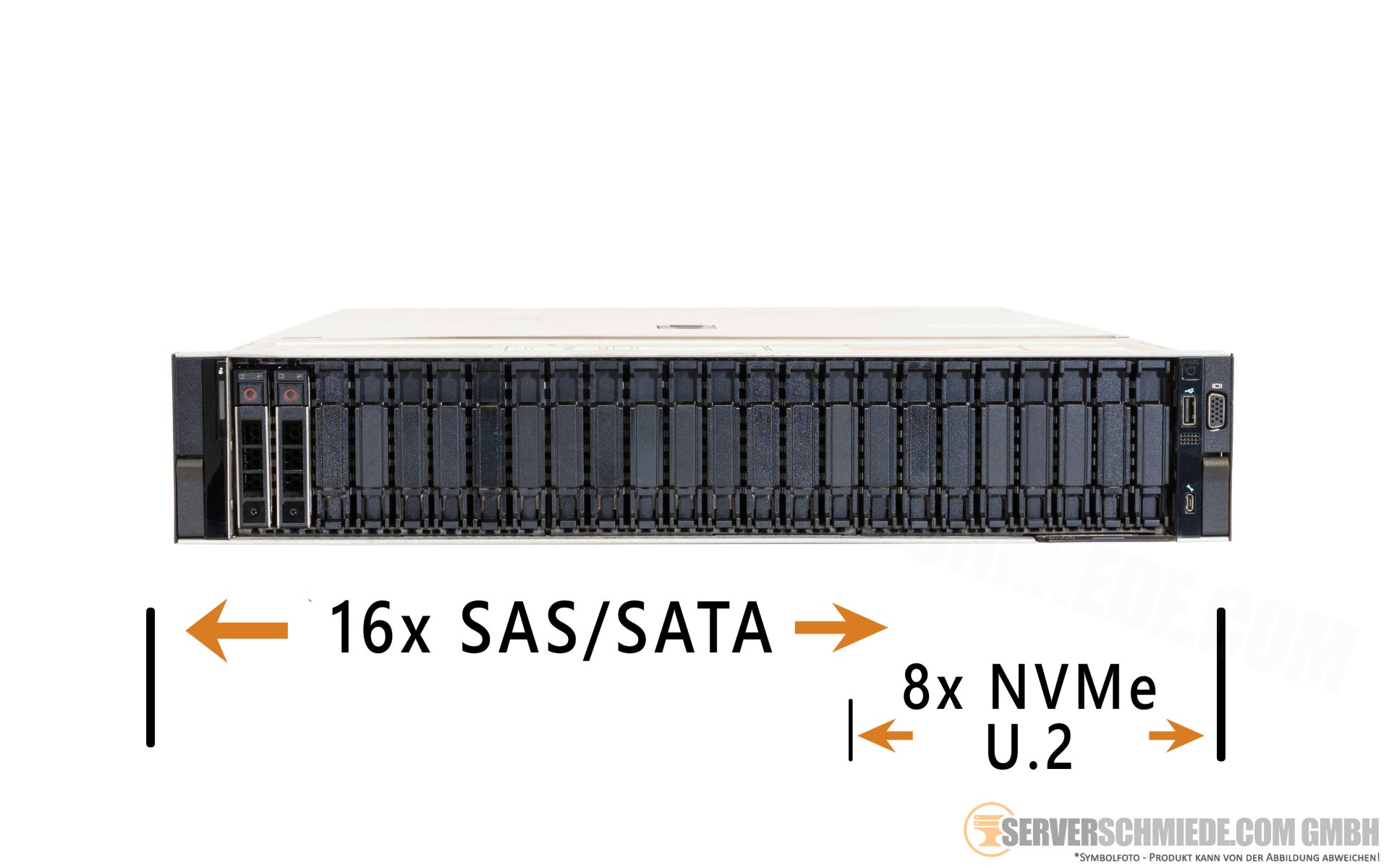 Dell PowerEdge R7525 2U Server 24x 2,5" SFF 16x SAS SATA 8x NVMe* 2x AMD EPYC Gen2 Gen3 DDR4 ECC Raid 2x PSU